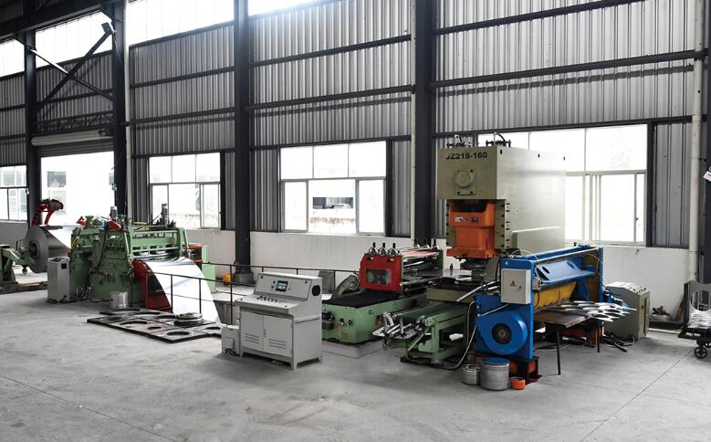 本設備的工作流程:本設備是將鋼卷板通過整平后、定尺沖壓落料、橫剪廢料的方式、把鋼板加工成客戶需要尺寸的專用自動剪切設備。該生產(chǎn)線的主要設備由液壓上料小車、開卷機、接料鏟頭、整平主機、渡橋、NC偏擺定尺送料機、沖壓設備、圓片輸送帶等機構構成。