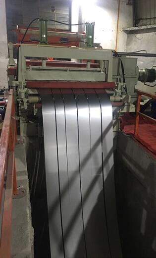 設(shè)備在工作時(shí)送料機(jī)構(gòu)處于被動(dòng)送料狀態(tài),板料通過夾送并經(jīng)板頭液壓剪床剪去不規(guī)則料頭后經(jīng)側(cè)向引導(dǎo)機(jī)構(gòu)進(jìn)入圓盤剪切機(jī)剪切成客戶需要的帶狀條料??v剪過程中,通過廢邊卷取機(jī)對縱切下來的廢邊迅速進(jìn)行收取成卷狀。縱切下來的帶料,通過活套緩沖,并經(jīng)過兩組分離裝置進(jìn)入張力站,通過該張力裝置和卷取機(jī)建立所需的收卷張力,以防止卷取后塌卷。最后由卸料機(jī)構(gòu)把料卷從收料軸上卸到出料小車后運(yùn)出。